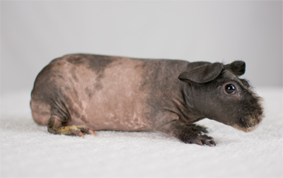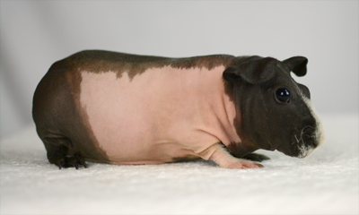 Skinny pig, brindle from Margaret's Hairless (CA). Brownie is the sire of some of our carriers.