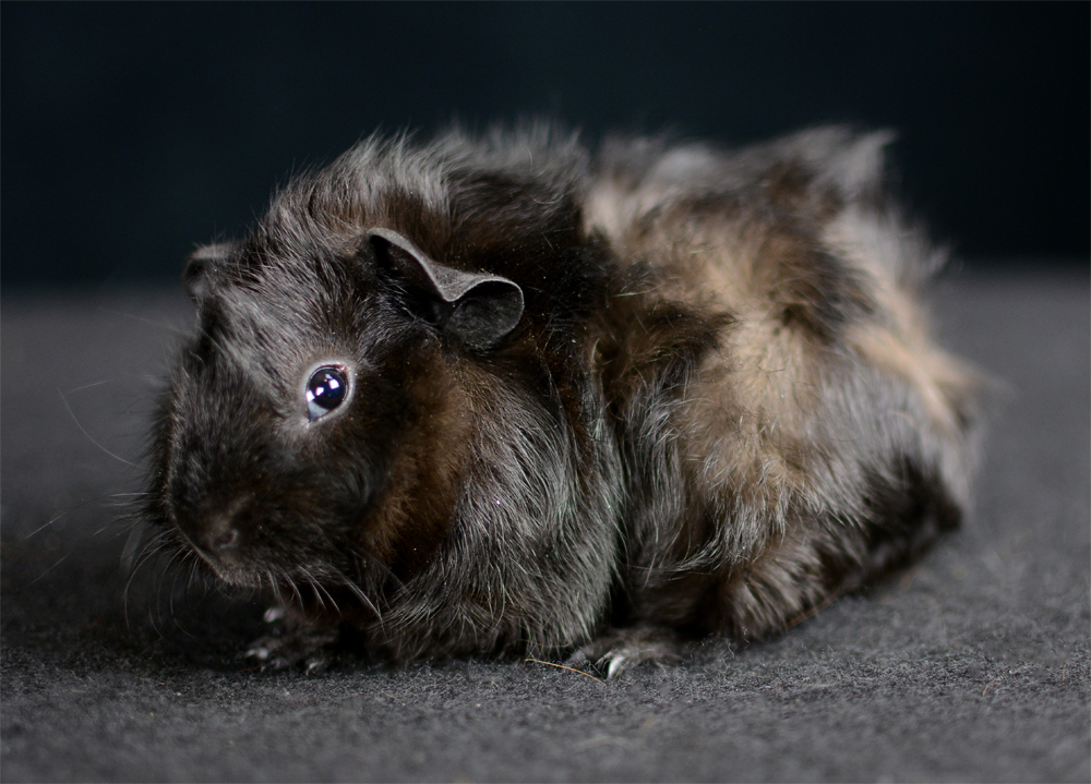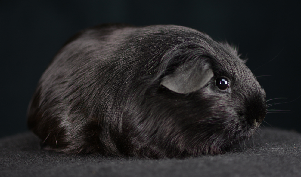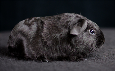 Skinny pig, self black from A&W Caviary (NE). Liberty is a beautiful solid black guinea pig.
