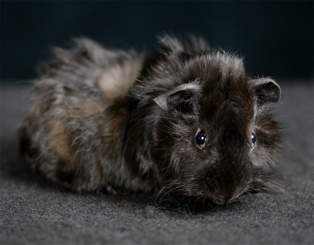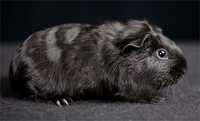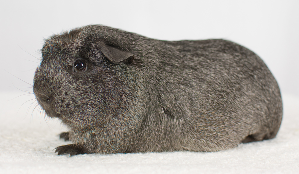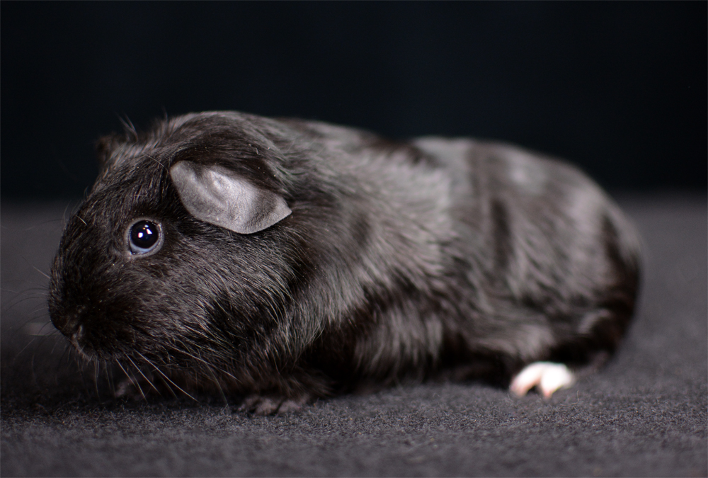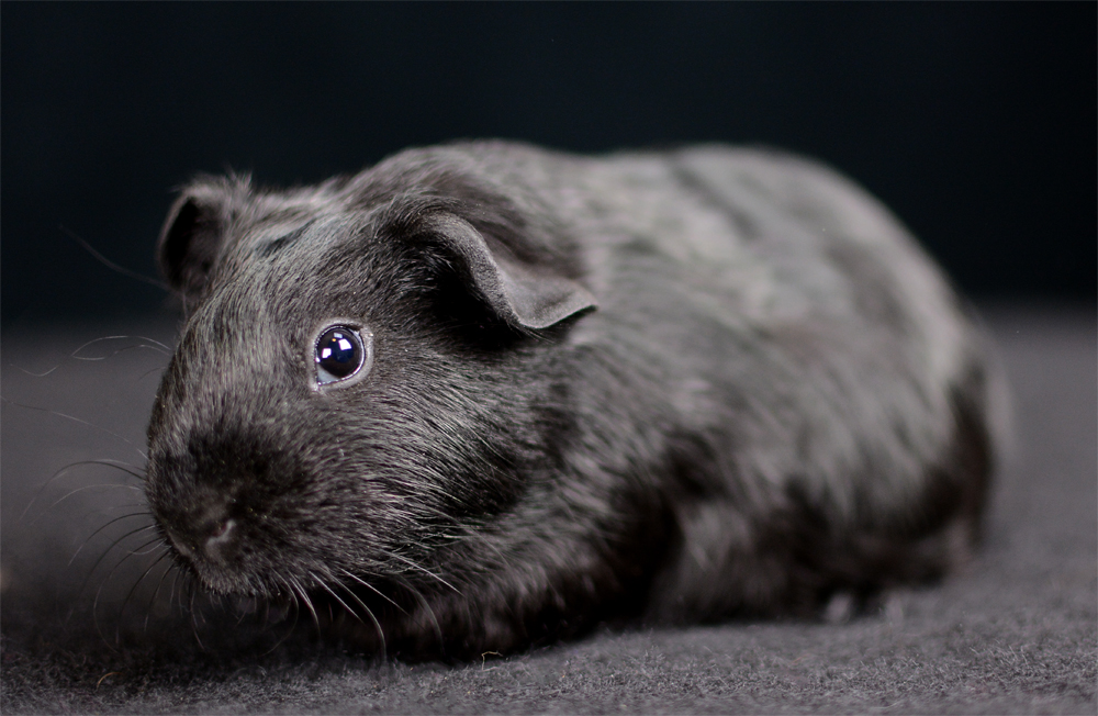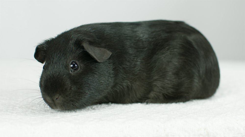 Skinny pig, self black from A&W Caviary (NE). Liberty is a beautiful solid black guinea pig.