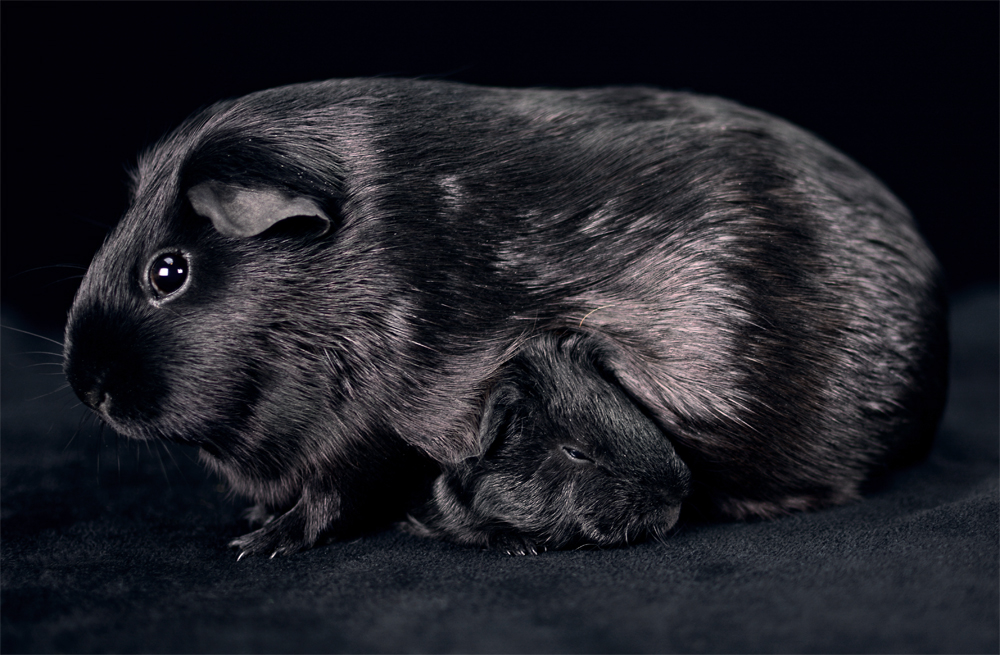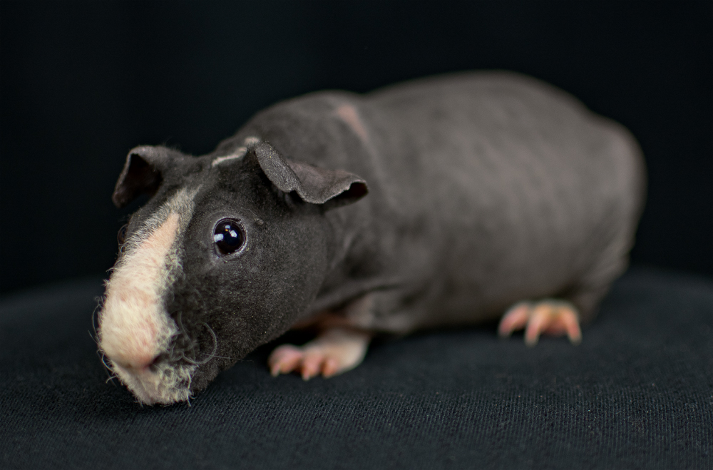 Skinny pig, self black from Cavyland Cuties (CA).